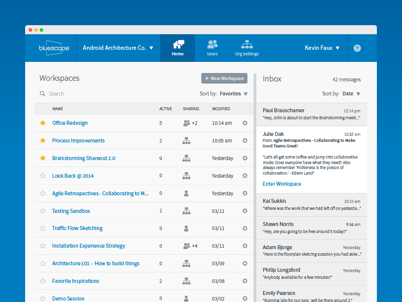 Showcased with its wall-sized, multi-touch screens, Bluescape is a powerful, multi-platform collaboration tool designed to meet the modern needs of product development teams. As the lead designer from 2013 through 2015, I worked closely with Bluescape's strategy, marketing, and development teams and created the UI and UX of all platforms.