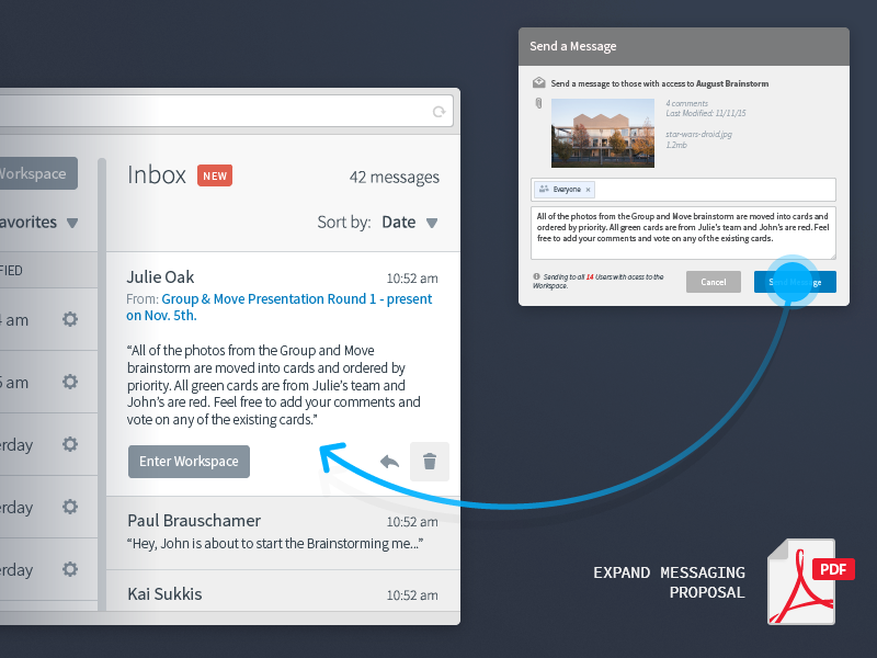 Implementation began with a complete redesign of the User Portal, as it was a vital element of social features and lacked support for mobile devices. My direct contributions ranged from audits of user permissions and roles, significantly reducing overlap and confusion; to the design of key features for improved collaboration, like user messaging, object comments, activity indicators and object groups.