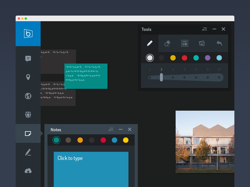 Bluescape is available on large multi-touch "Walls," browsers, and iPads, each with unique software limitations and interaction types. Maintaining feature parity was a constant struggle due to their staggered implementation, and correcting this became a large part of our redesign. As partial implementations were made full, we revisited feature designs and recreated the entire UI to have a consistent look and feel with pixel perfect implementation across all platforms.